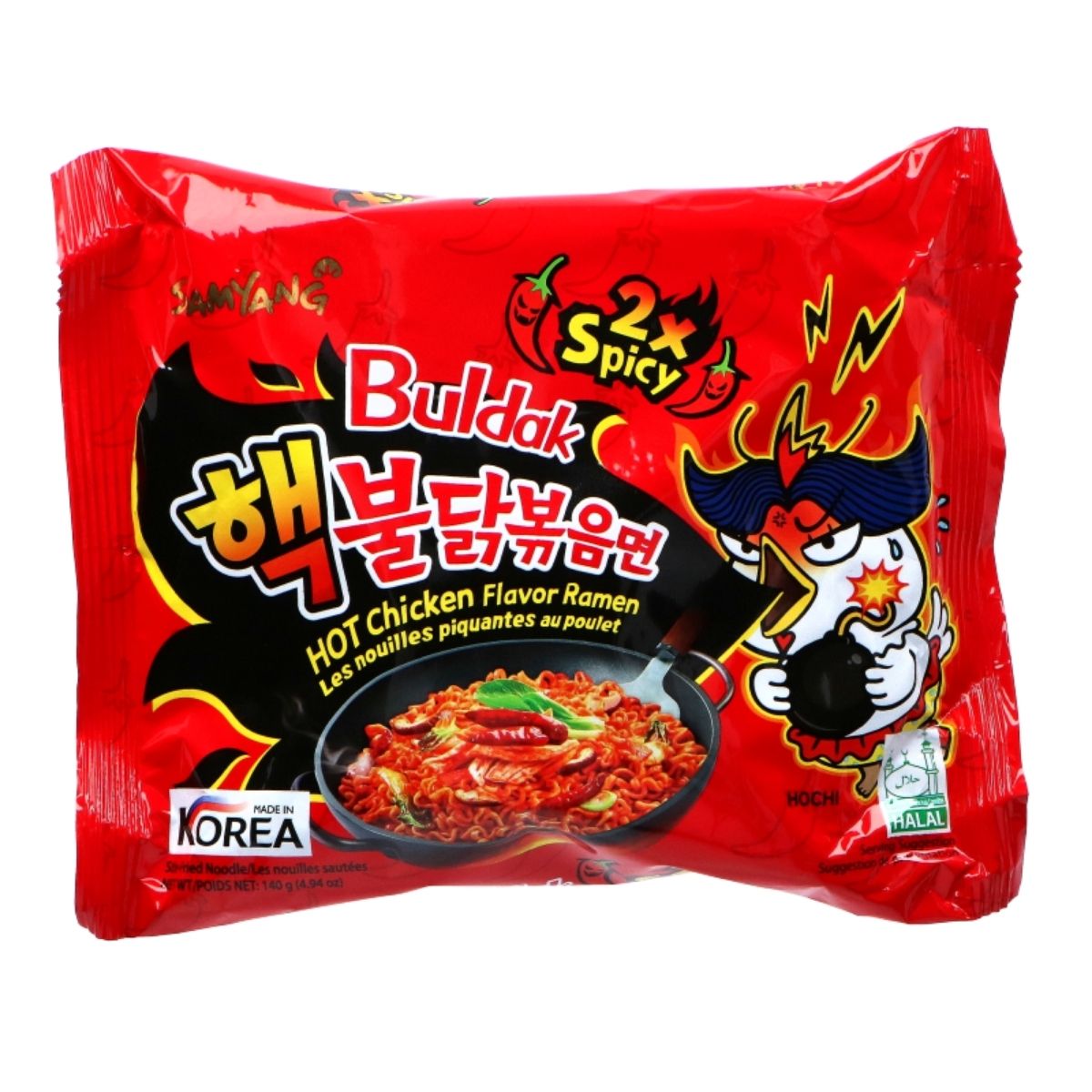 Etsitkö äärimmäisen tulista ramenia? 🔥 Buldak Ramen Extreme Hot Chicken 2x Spicy on tuplasti tulisempi kuin alkuperäinen Buldak Ramen, joten se sopii vain kovimmille chilin ystäville! Tämä Samyangin klassikko on tunnettu polttavasta kastikkeestaan, joka takaa unohtumattoman makuelämyksen.