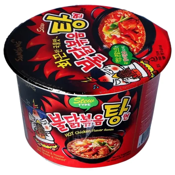 Jos rakastat tulisia nuudeleita, Buldak Ramen Hot Chicken Stew on tehty just sulle! 🌶️🔥 Tämä Samyangin legendaarinen ramen yhdistää vahvan mausteisuuden ja herkullisen kanan maun täyteläiseen liemeen. Isoon kuppiin pakattu annos on täydellinen nopeaksi ateriaksi, kun haluat jotain lämmittävää ja supermaukasta!